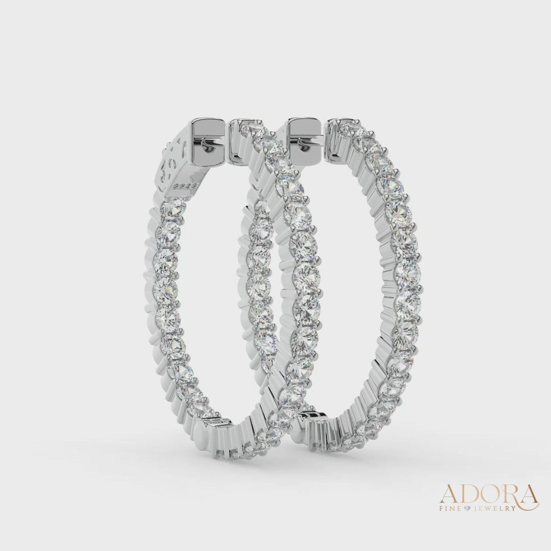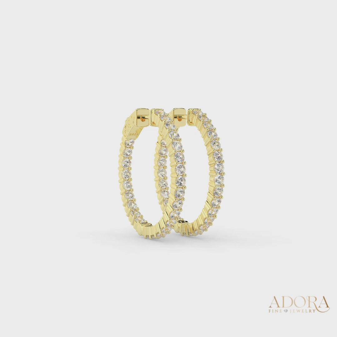 Add a touch of timeless sophistication and glamor to your look with these exquisite Inside-Outside Hinged Hoop Earrings. Encrusted with 2.5 mm AAAAA Cubic Zirconia (CZ) stones these earrings shine everywhere it matters. The inside-outside design lends a delicate, alluring sparkle while the finish ensures both luster and enduring wear. These Hoop Earrings measure 30 mm in diameter, perfect for the modern woman's collection.
