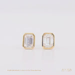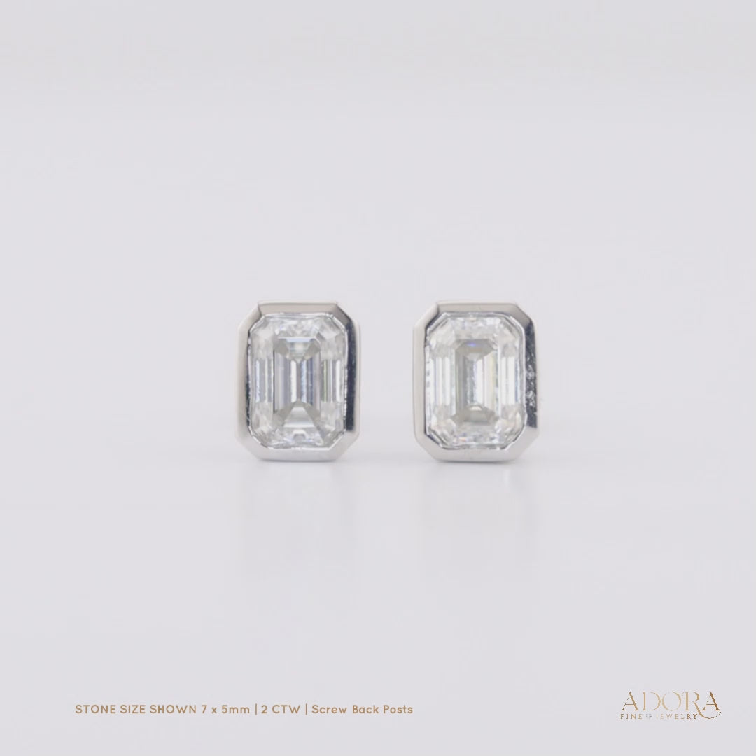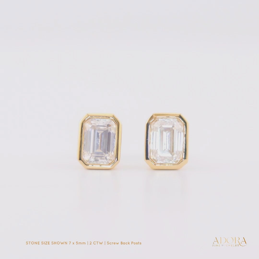 14K Solid Gold Moissanite Emerald Shape Bezel Stud Earrings | 7 x 5mm | 2 CTW | Screw Back Posts