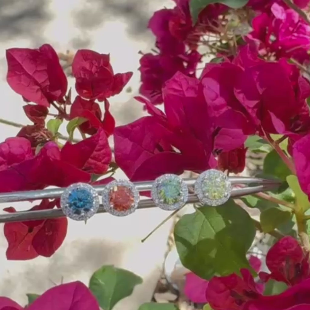 Color Moissanite Halo Stud Earrings | 5mm Center Stone | 1.24 CTW | Rhodium or 18K Gold Plated Sterling Silver | Gift Ready