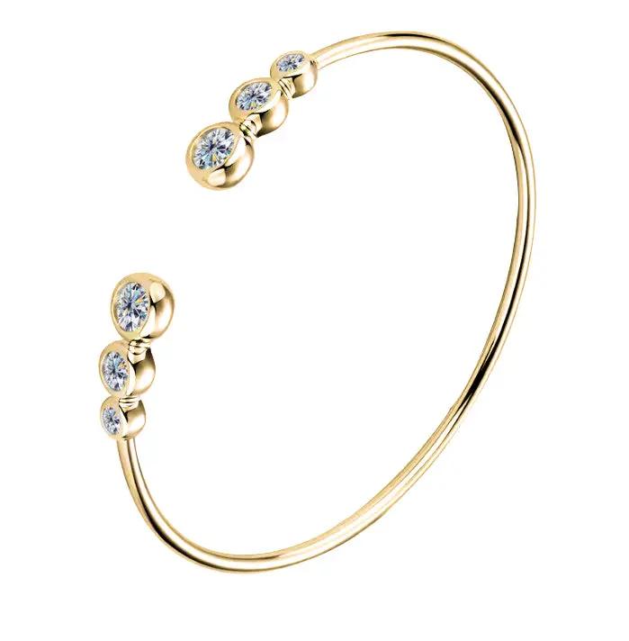 Round Cut Moissanite bangle bracelet makes a timeless statement of elegance. These Sterling Silver Rhodium plated or 14K Gold Plated earrings sparkle with a total weight of 1.75 ct. of brilliant moissanite stone. Weight may vary slightly