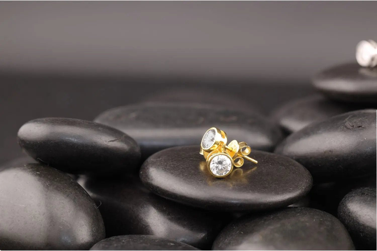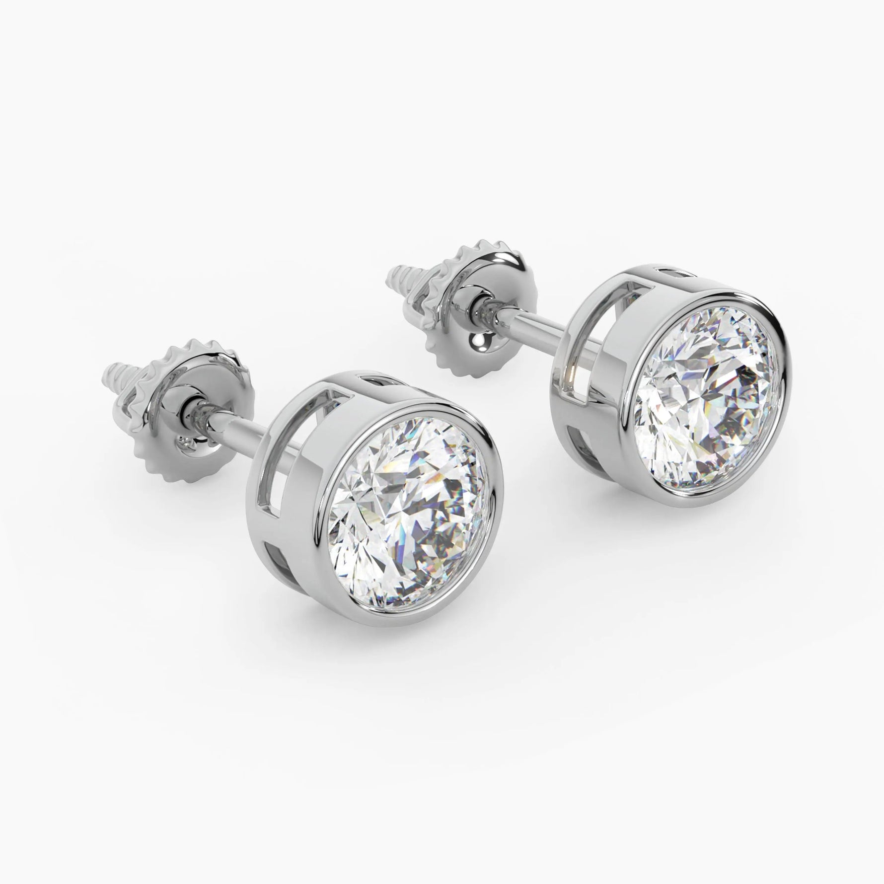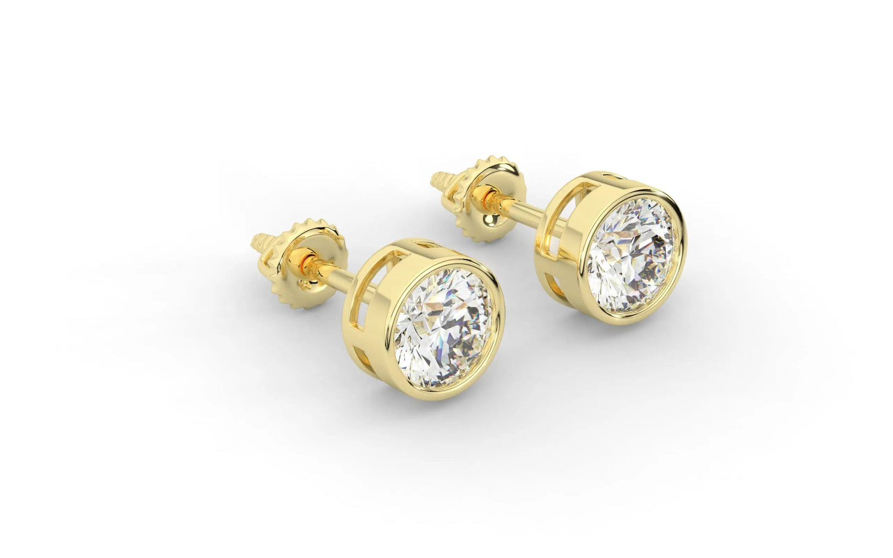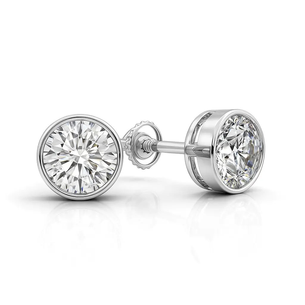 14K Solid Gold Moissanite Bezel Stud Earrings | Round Cut | 0.5 to 2 CTW | VVS1 D-F Color | Push Back or Screw Back | Made in USA