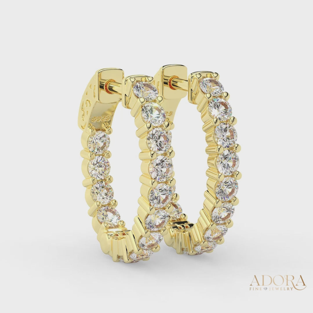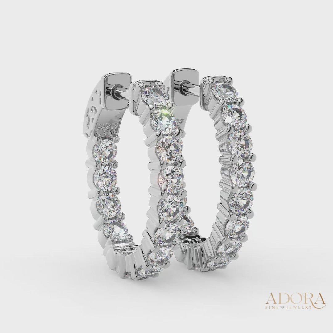 Add grace and glamour to your style with these exquisite Inside-Outside Hinged Oval Shaped Small Hoop Earrings. Crafted from 925 Sterling Silver, they sparkle with 3.0 mm AAAAA Cubic Zirconia stones for a look that is alluring and timeless. Exquisitely comfortable and lightweight, these 24 mm in length and x 20 mm wide earrings are the perfect accessory for modern sophistication.