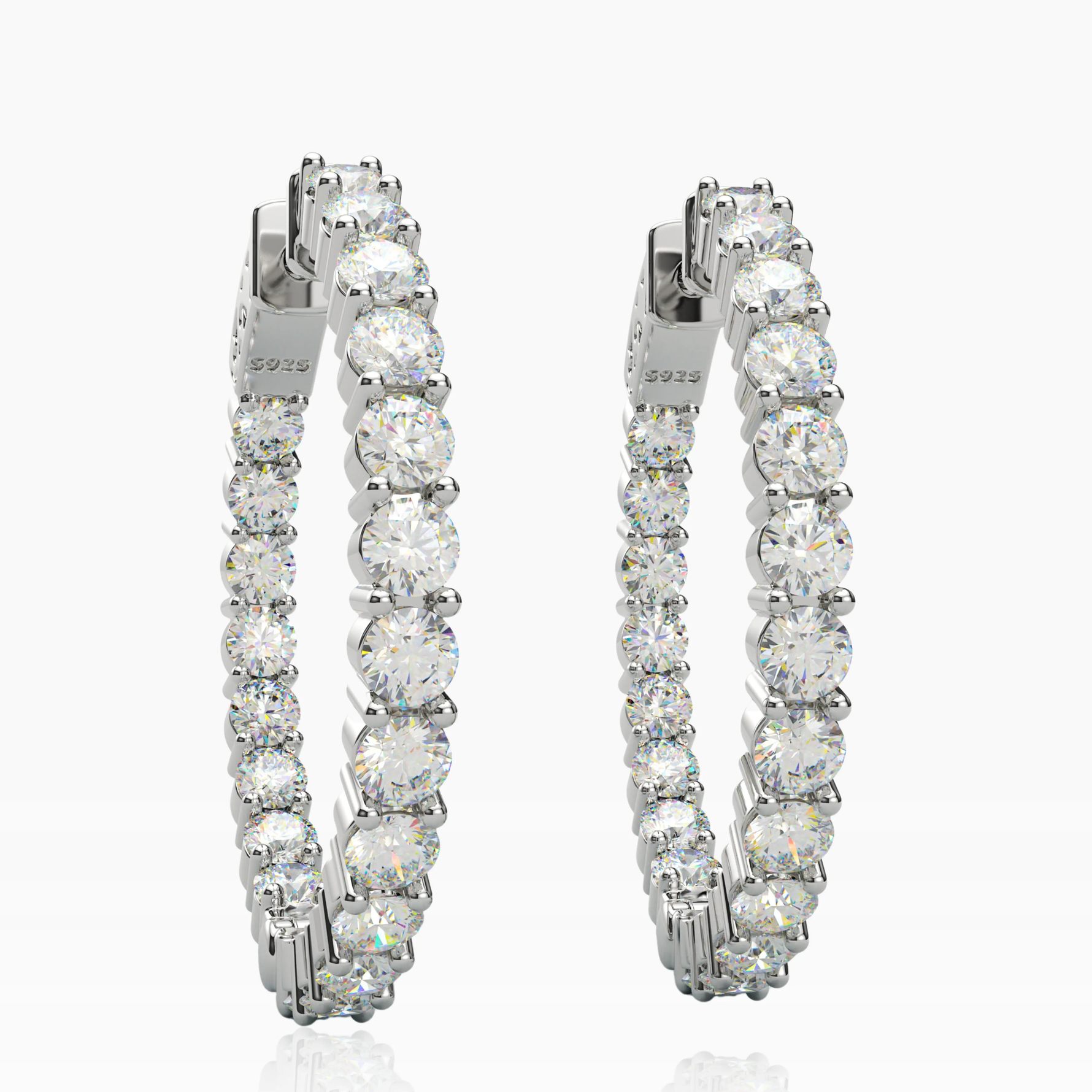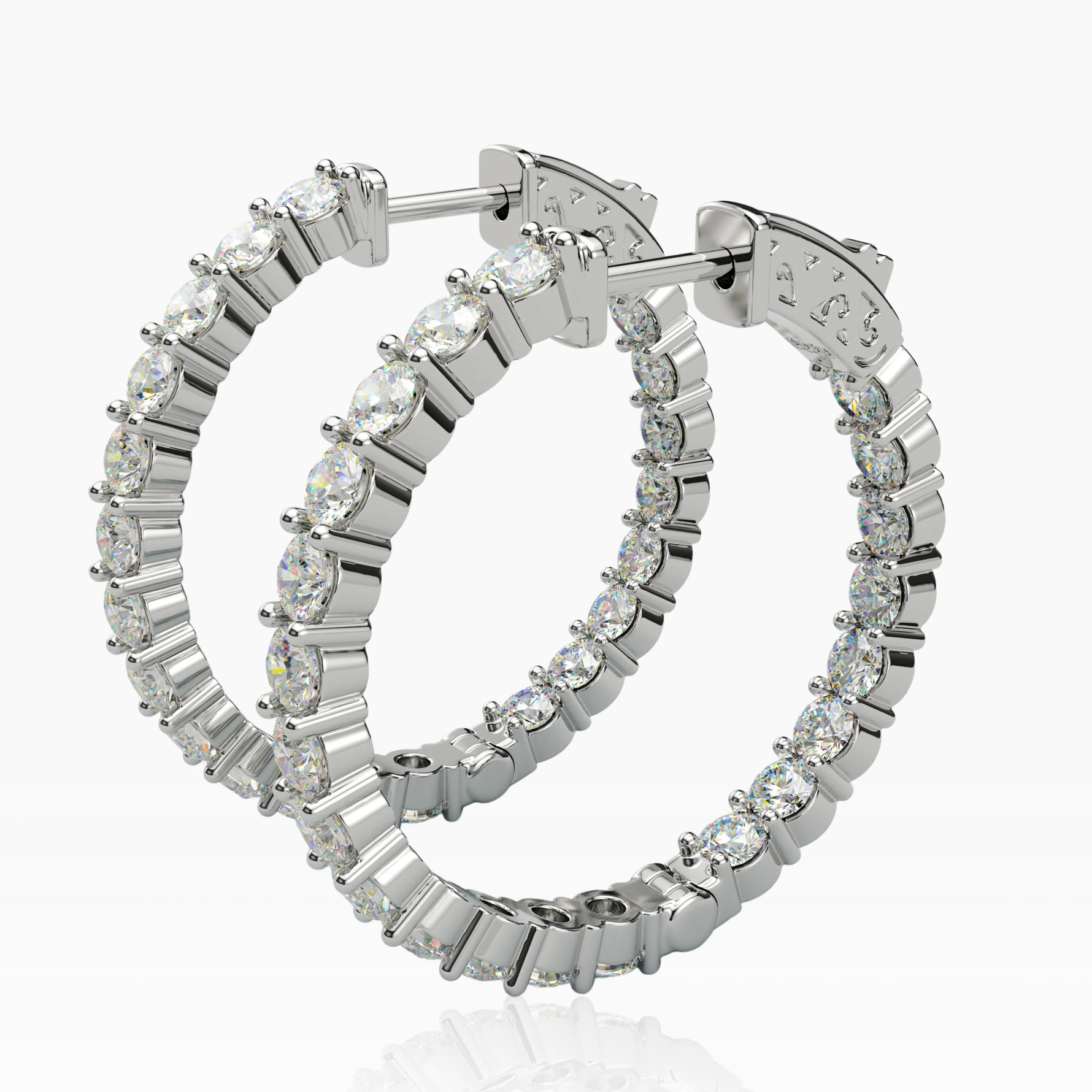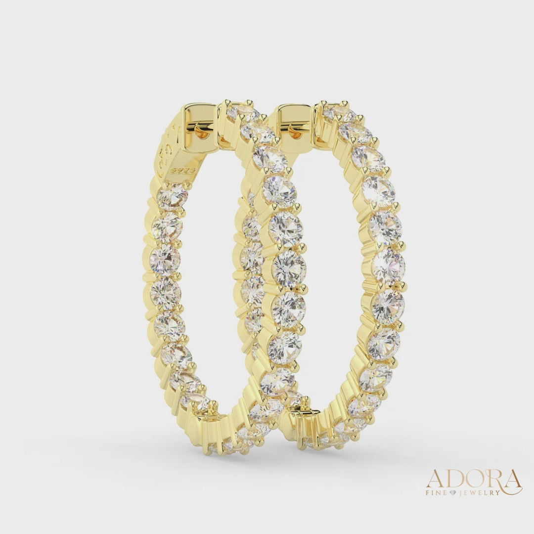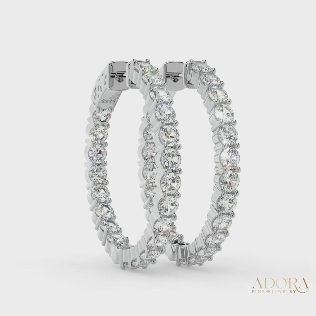 Add a touch of timeless sophistication and glamor to your look with these exquisite Inside-Outside Hinged Hoop Earrings. Encrusted with 3.0 mm AAAAA Cubic Zirconia (CZ) stones these earrings shine everywhere it matters. The inside-outside design lends a delicate, alluring sparkle while the finish ensures both luster and enduring wear. These Hoop Earrings measure 30 mm in diameter, perfect for the modern woman's collection.