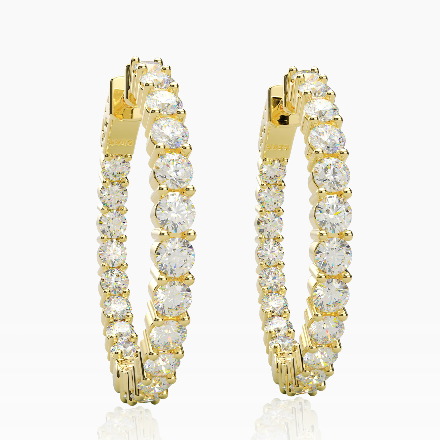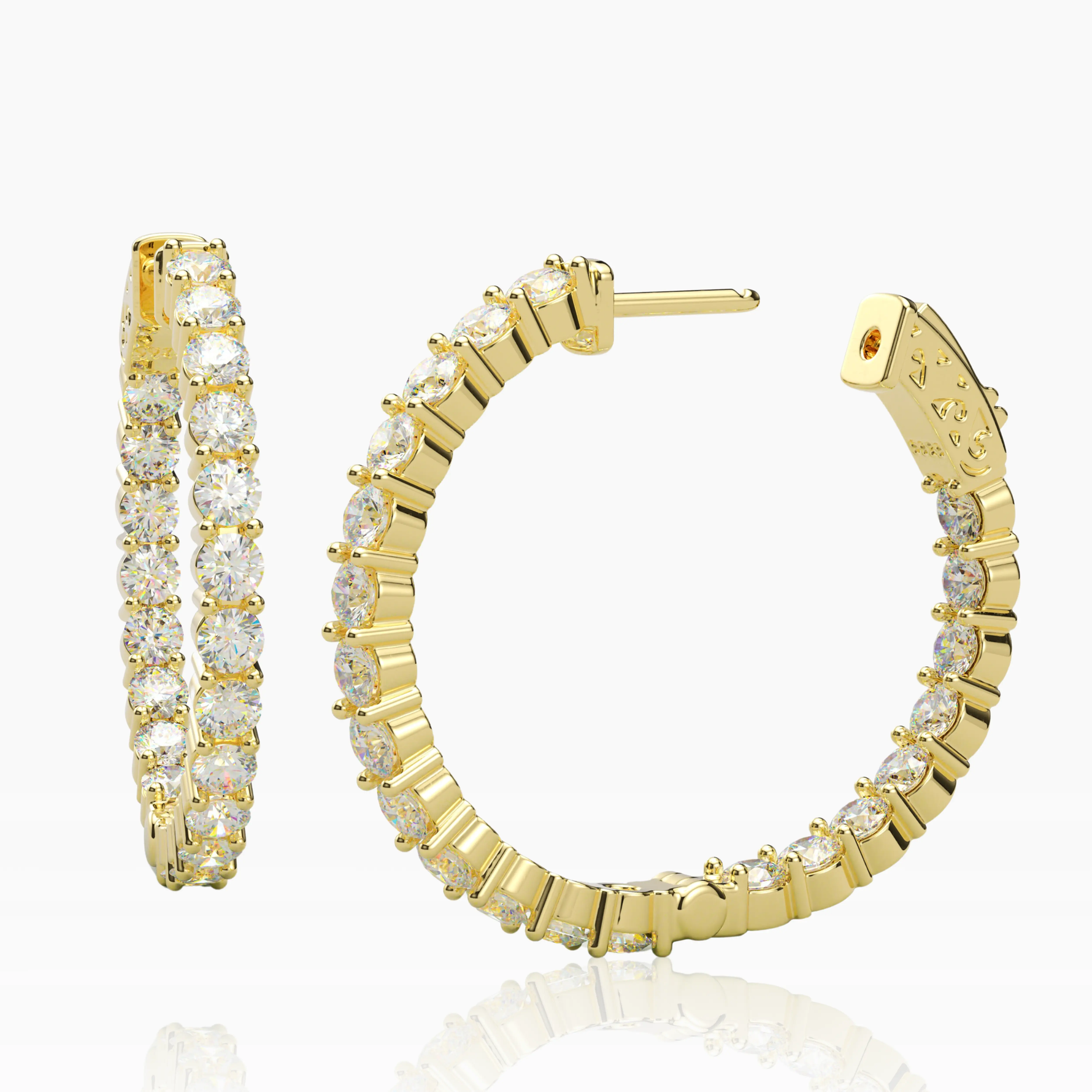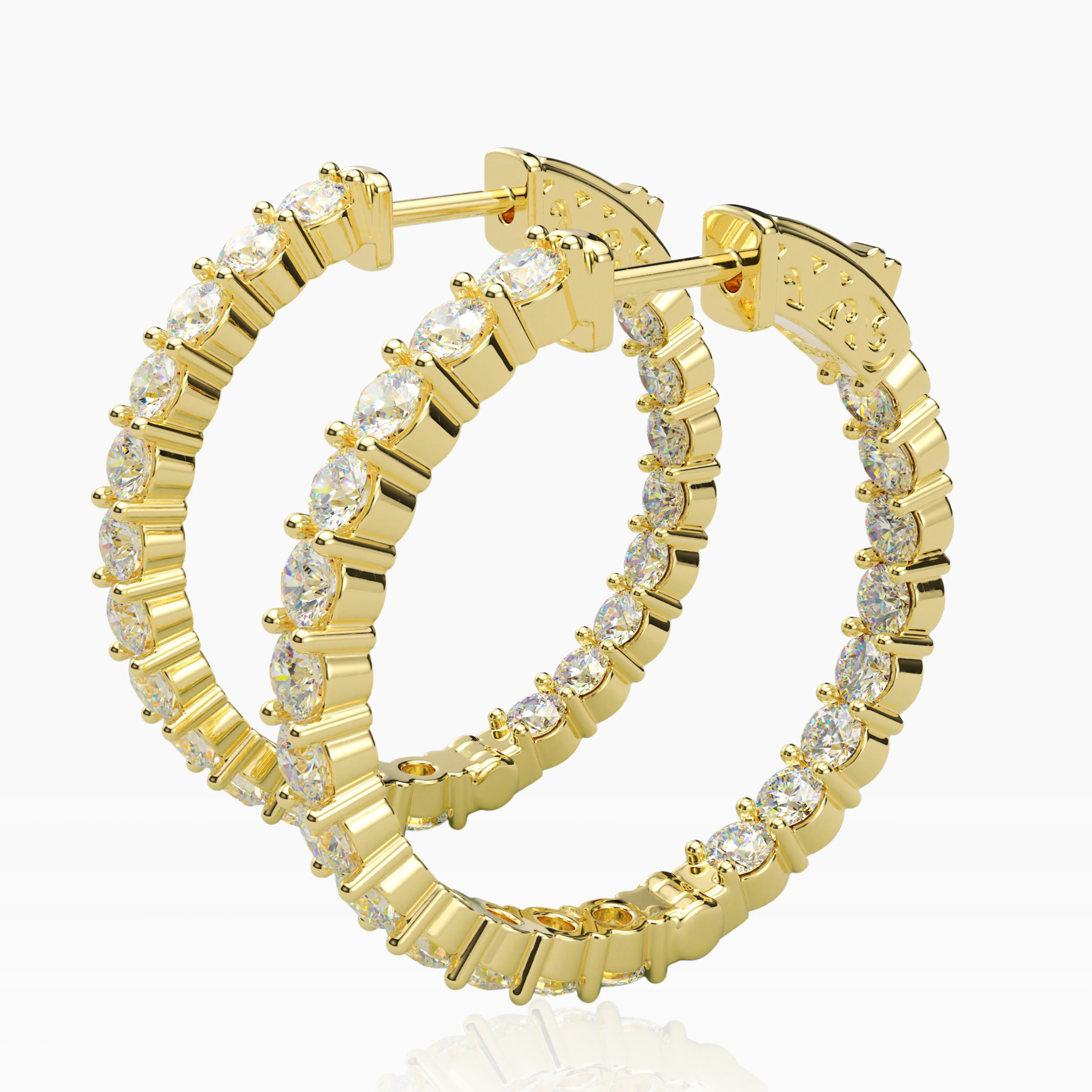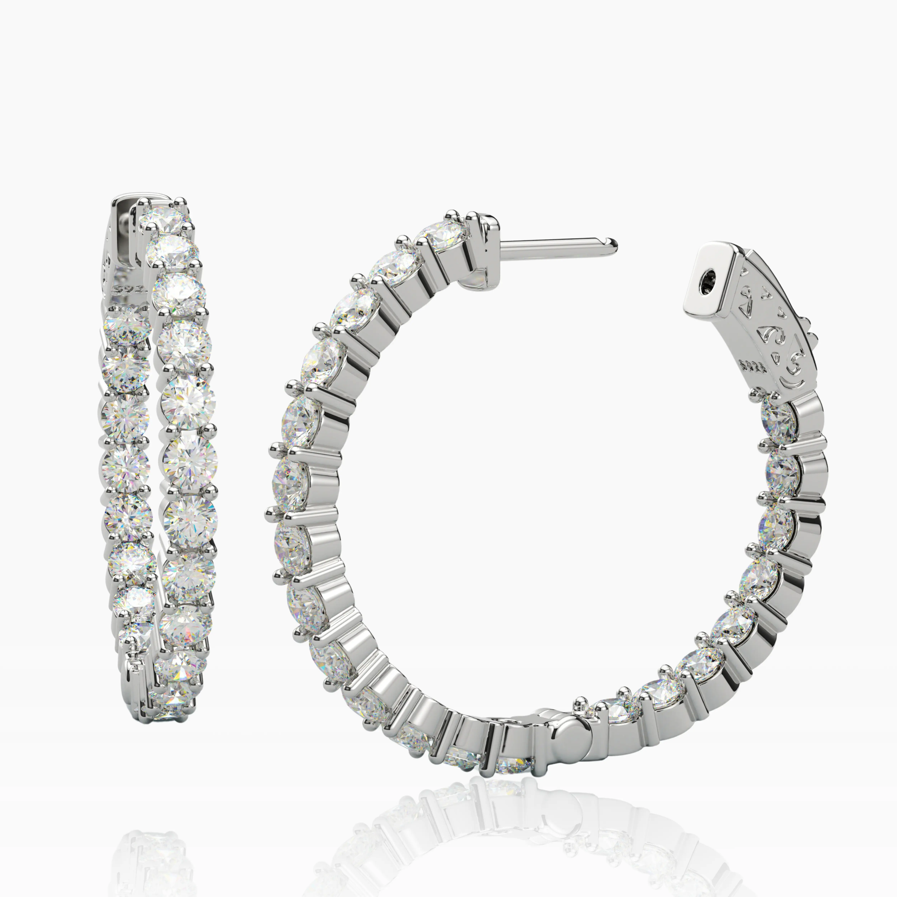 Add a touch of timeless sophistication and glamor to your look with these exquisite Inside-Outside Hinged Hoop Earrings. Encrusted with 3.0 mm AAAAA Cubic Zirconia (CZ) stones these earrings shine everywhere it matters. The inside-outside design lends a delicate, alluring sparkle while the finish ensures both luster and enduring wear. These Hoop Earrings measure 30 mm in diameter, perfect for the modern woman's collection.